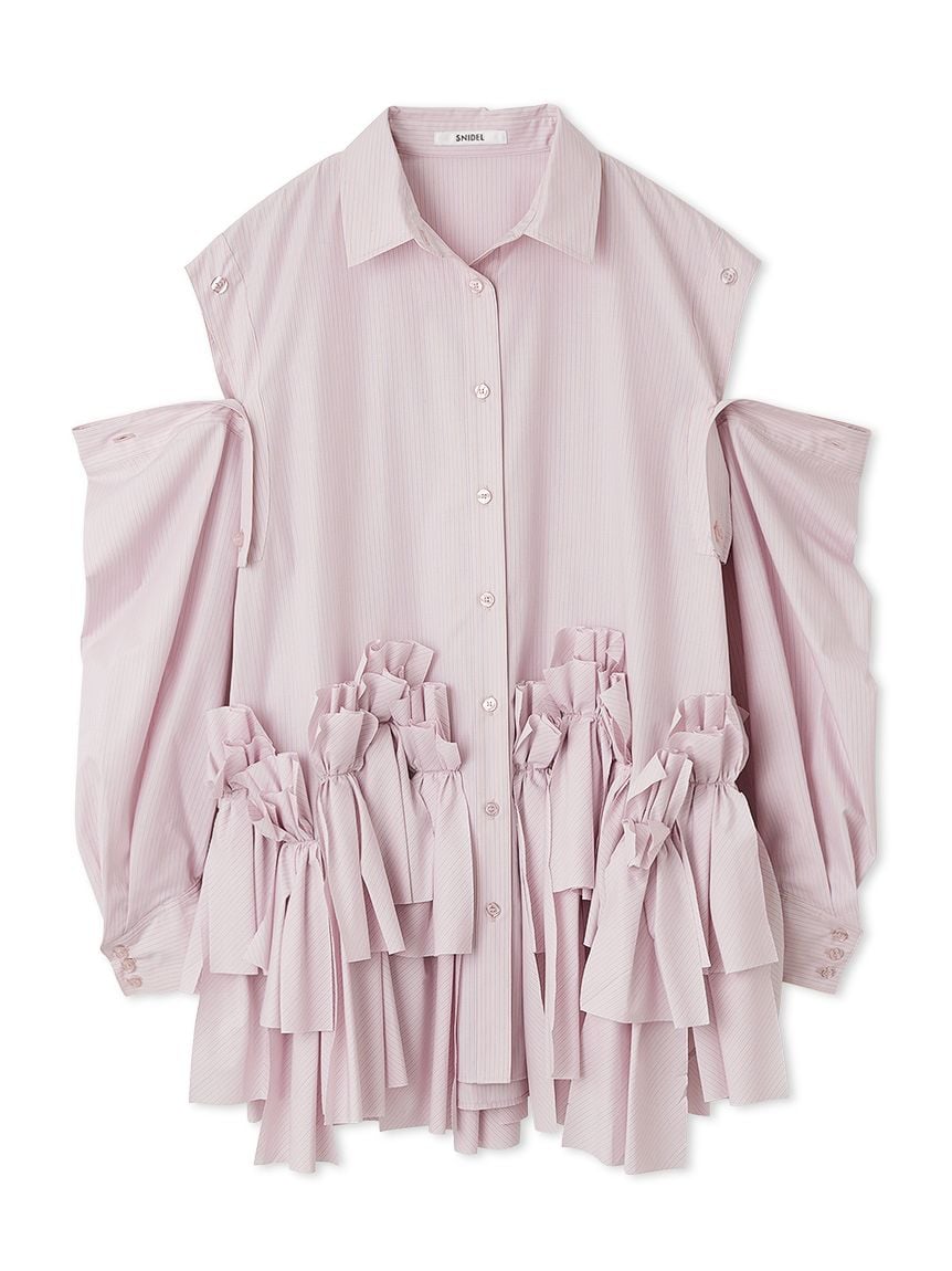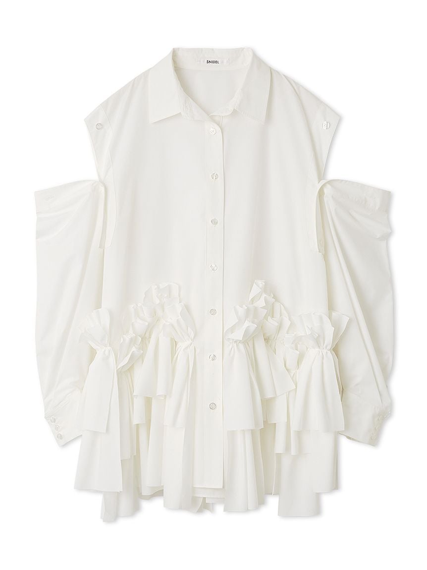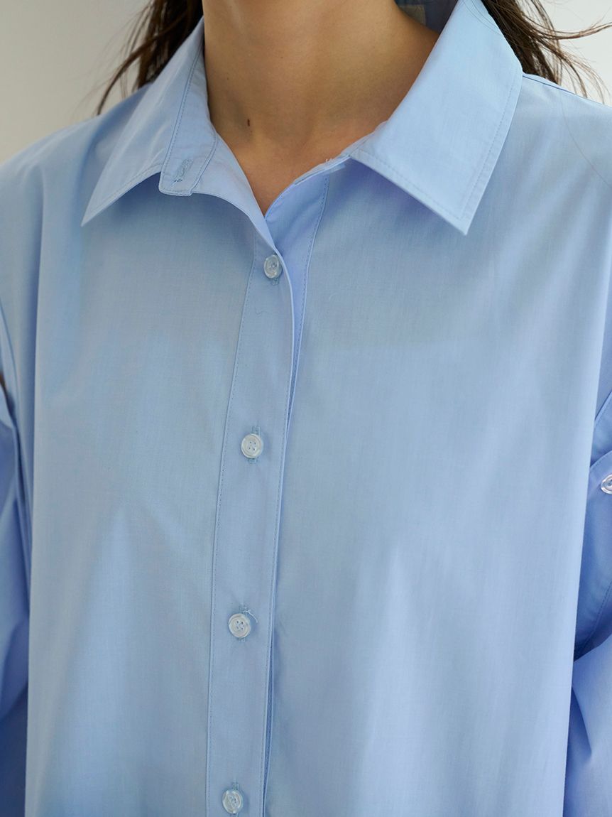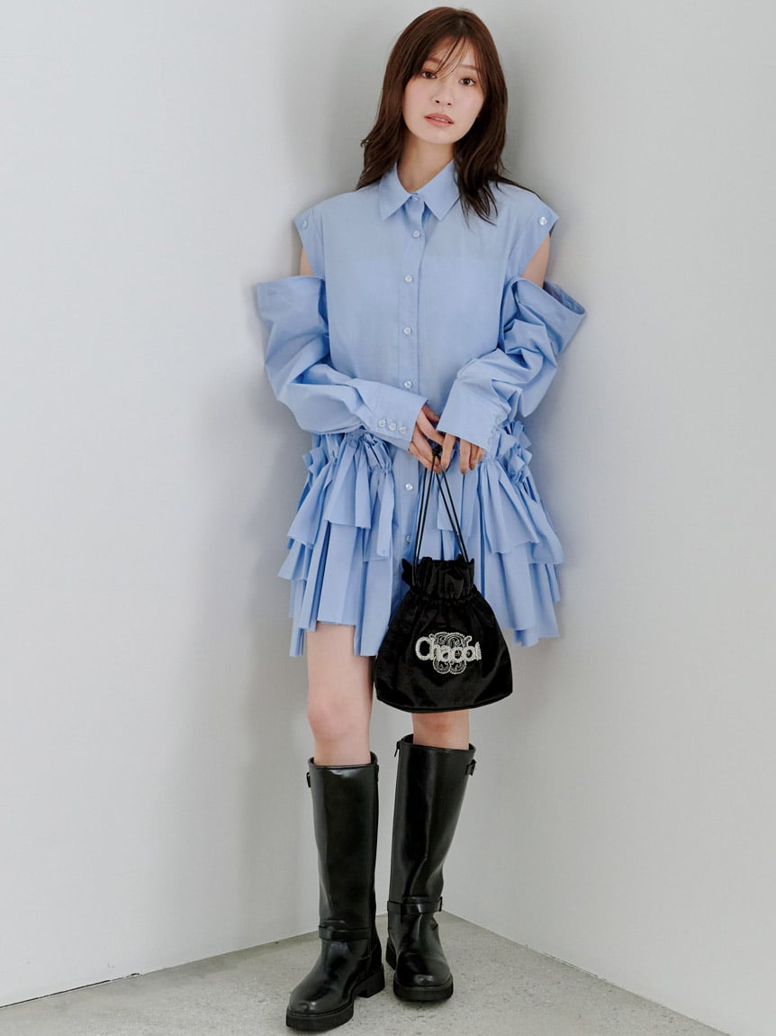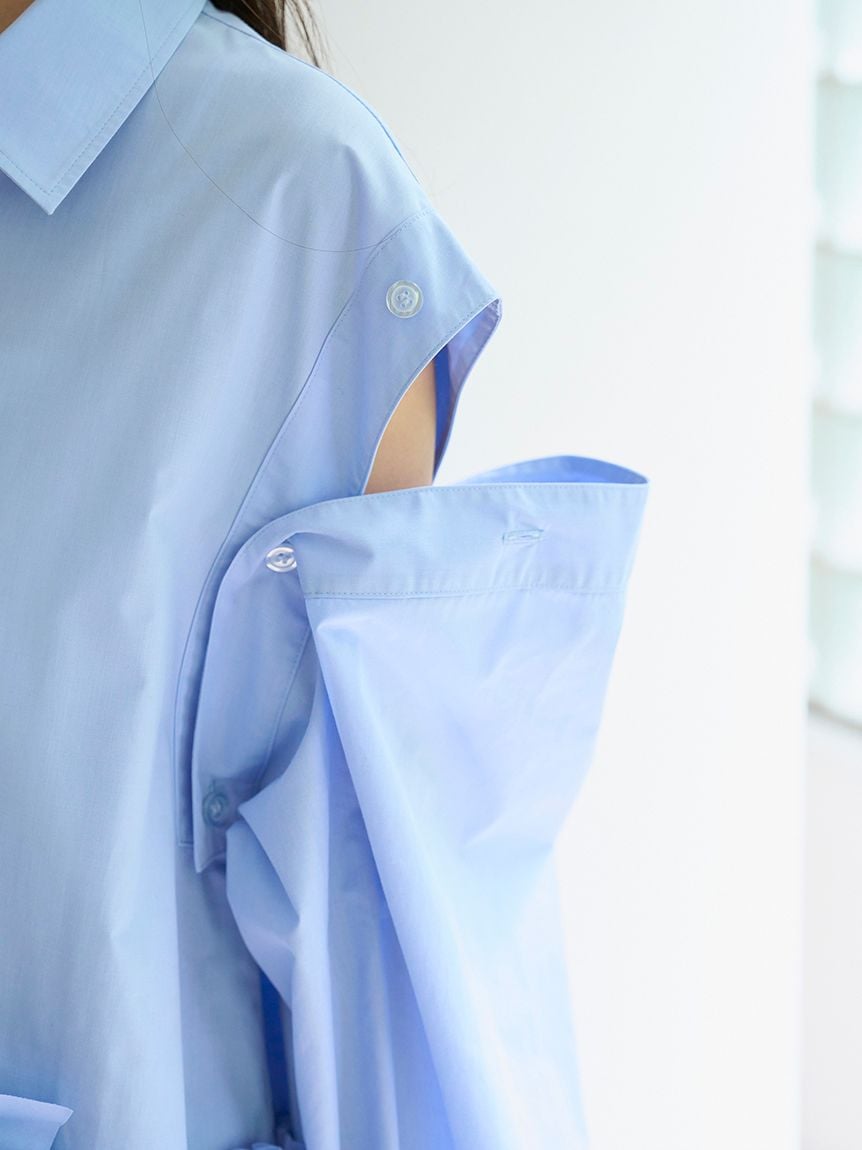 [Elegant ribbon shirt mini dress with buttons at the shoulders for versatile styling]