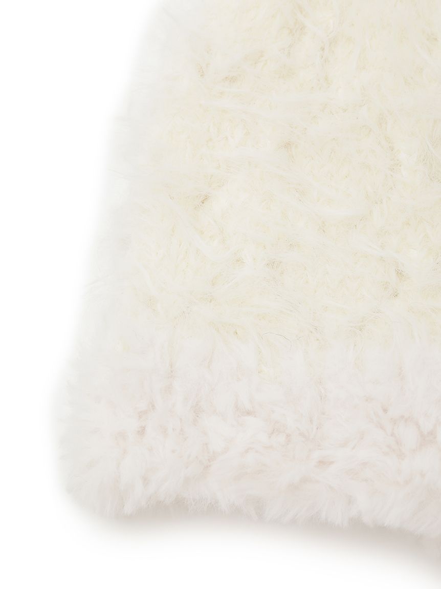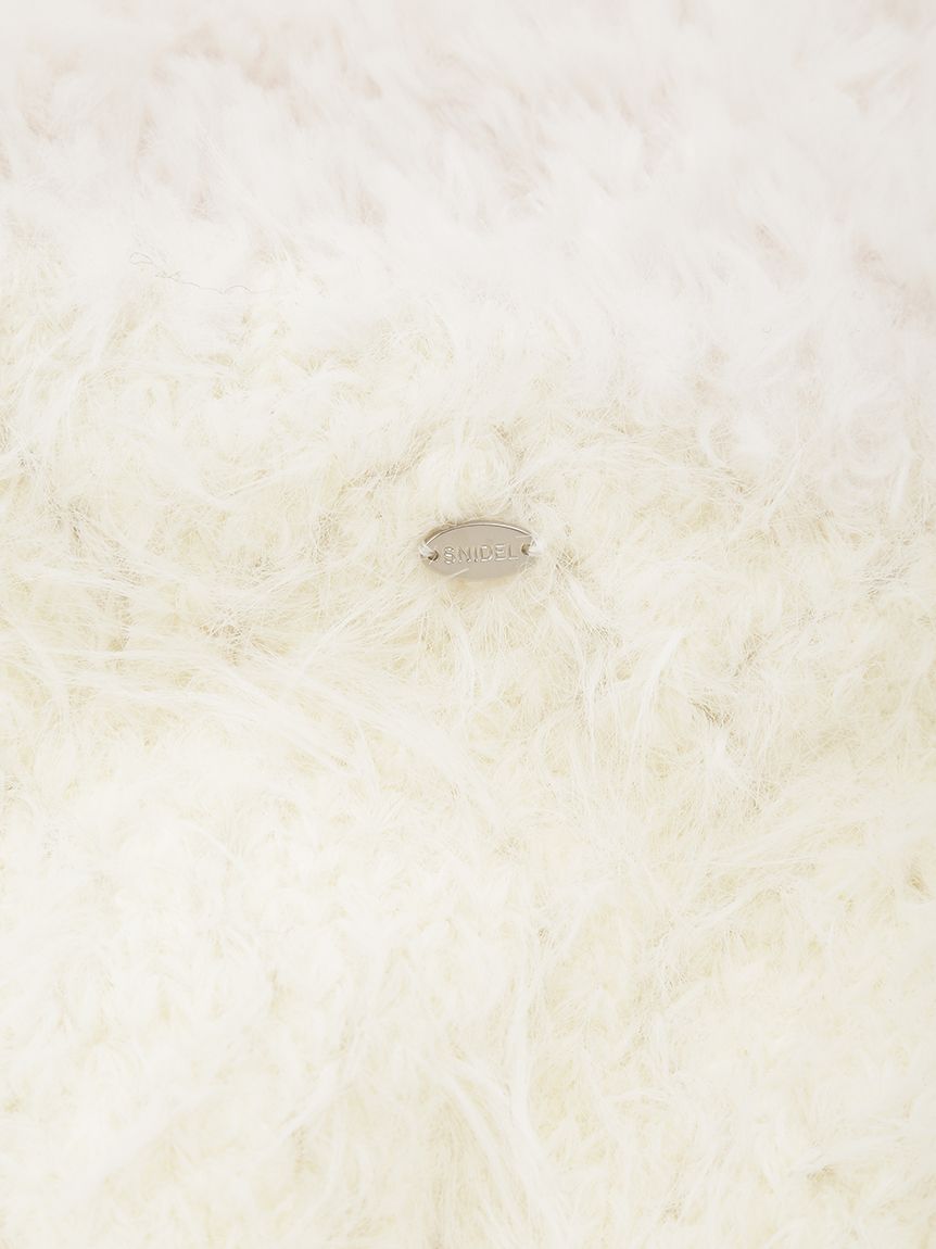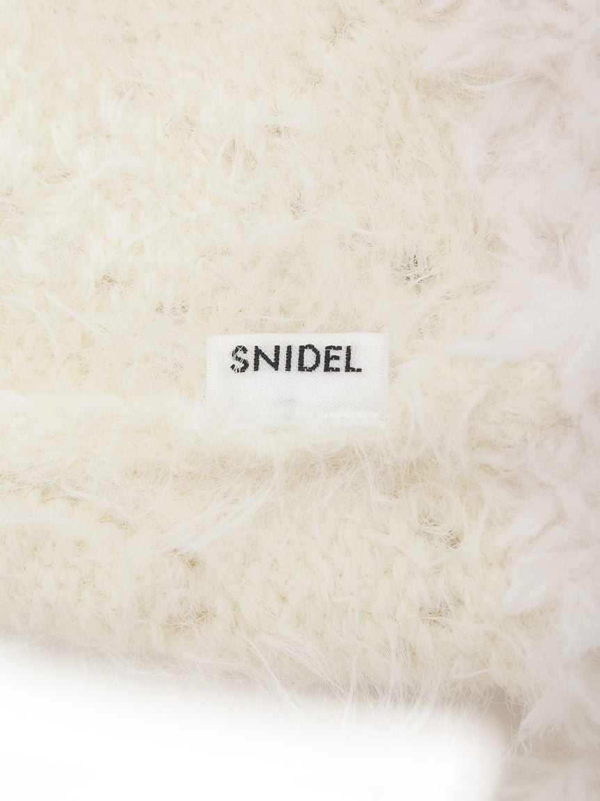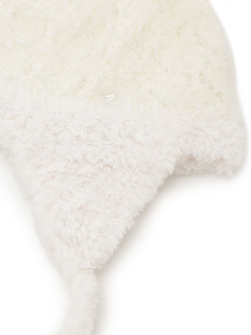 This ear flap knit cap is crafted from soft and fluffy shaggy knit material. The top is made of a light, shaggy knit with a loose, checkered pattern. The three-dimensional design provides full coverage all the way to the ears, and the long-pile shaggy knit material creates a slimming effect. It's a great accent piece for casual sweatshirts or feminine outfits. The long ear flaps are designed to be long enough to look cute whether tied in a bow or left loose. A subtle SNIDEL logo metal plate on the side adds a touch of elegance. Available in two colors: ivory, which blends seamlessly with any outfit, and black, which offers a sweet and sophisticated look.
