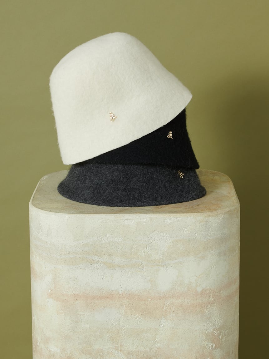 This elegant wool hat is crafted from wool-blend felt fabric, offering warmth and softness. The slightly deep crown creates a slimming effect. The detachable, lustrous gold mini metal brooch adds a touch of elegance. The understated yet elegant design is perfect for a variety of occasions, from pairing it with wide-leg pants for a trendy look to a knit dress for a feminine touch. It adds a sophisticated touch to your everyday look. Available in three colors: ivory, which complements white outfits; a versatile dark gray; and a classic black.