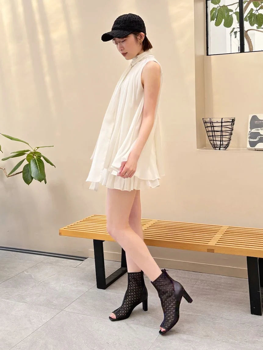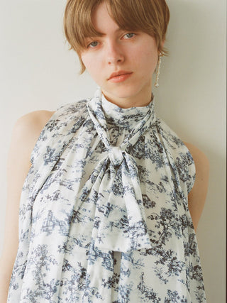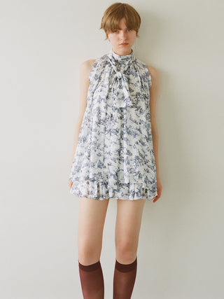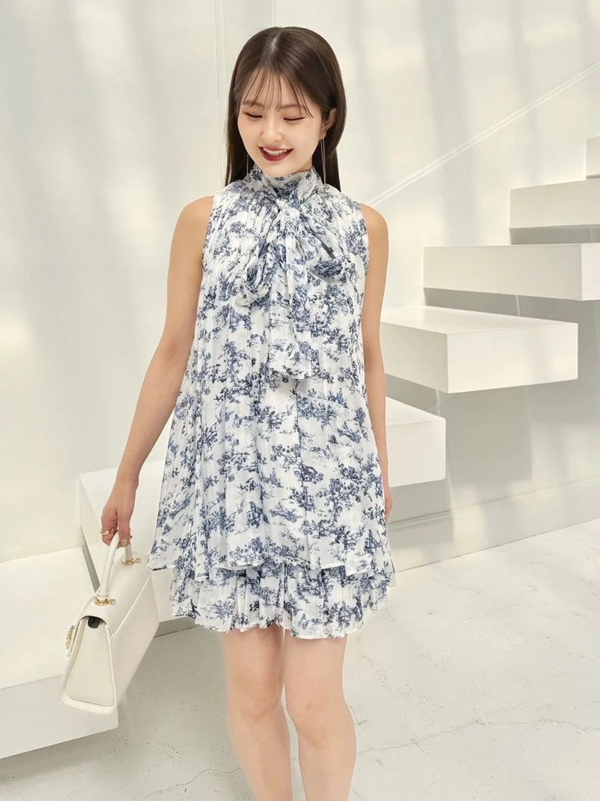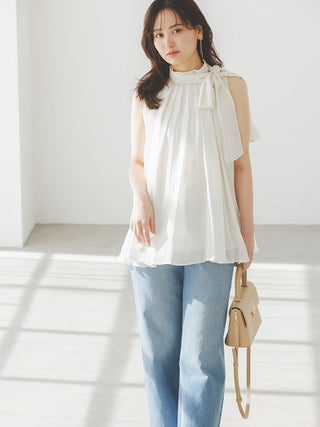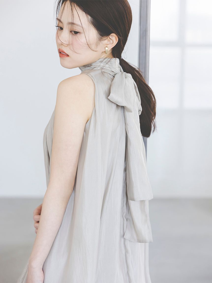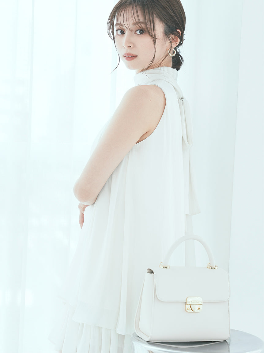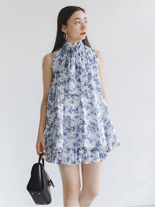 The American-style gathered blouse set is a set item of a soft and elegant tunic-length American-style blouse made of a light and glossy fabric and a mini skirt and shorts made of the same fabric. The American-style design of the blouse makes the shoulders look beautiful, and the fabric with plenty of gathers creates an elegant silhouette. The fluffy bowtie ribbon at the neckline is an accent. It can also be removed and attached around the waist. The skirt and shorts have a clean waist and a ruffled hem for an elegant impression. Since it is a skirt and shorts, you can wear it with confidence. By wearing the top and bottom as a set, you can complete a coordination like a dress. It is a versatile set that can be used in a variety of ways by using each item alone.