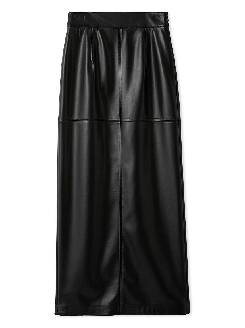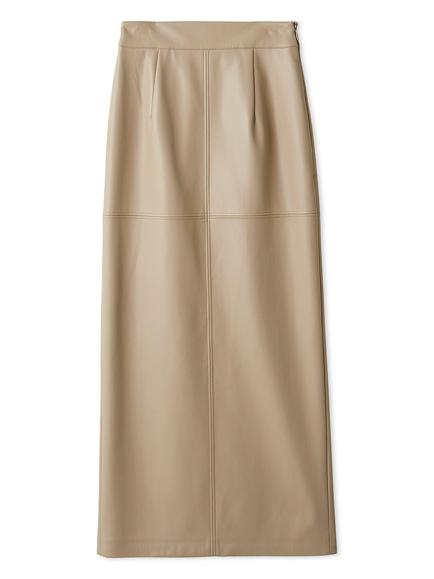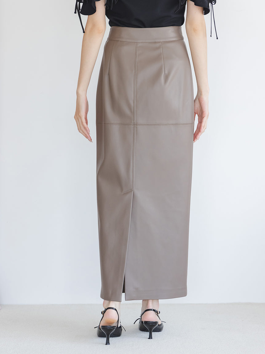 This tight skirt is crafted from soft, stretchy synthetic leather for a gentle fit. Its simple silhouette is accented with subtle vertical and horizontal stitching. Despite its tight silhouette, the leather-like texture provides just enough coverage for a comfortable fit. The slightly high waistline creates a flattering, leg-lengthening effect. A deep slit in the back creates a relaxed feel and allows for easy movement. This versatile skirt can be worn with a dressy blouse or casual T-shirt, making it suitable for both office and casual wear. It's lined and features a side zipper for easy on and off.