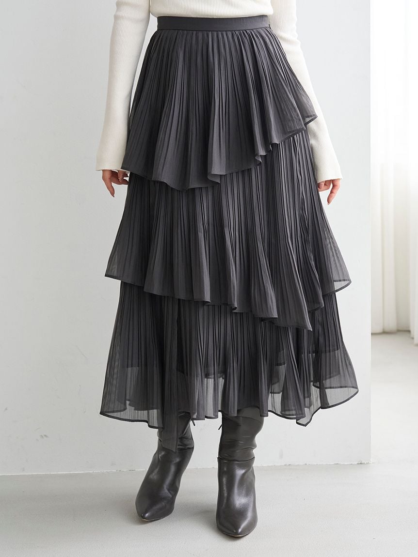 Sustainable Pleated Tiered Long Skirt