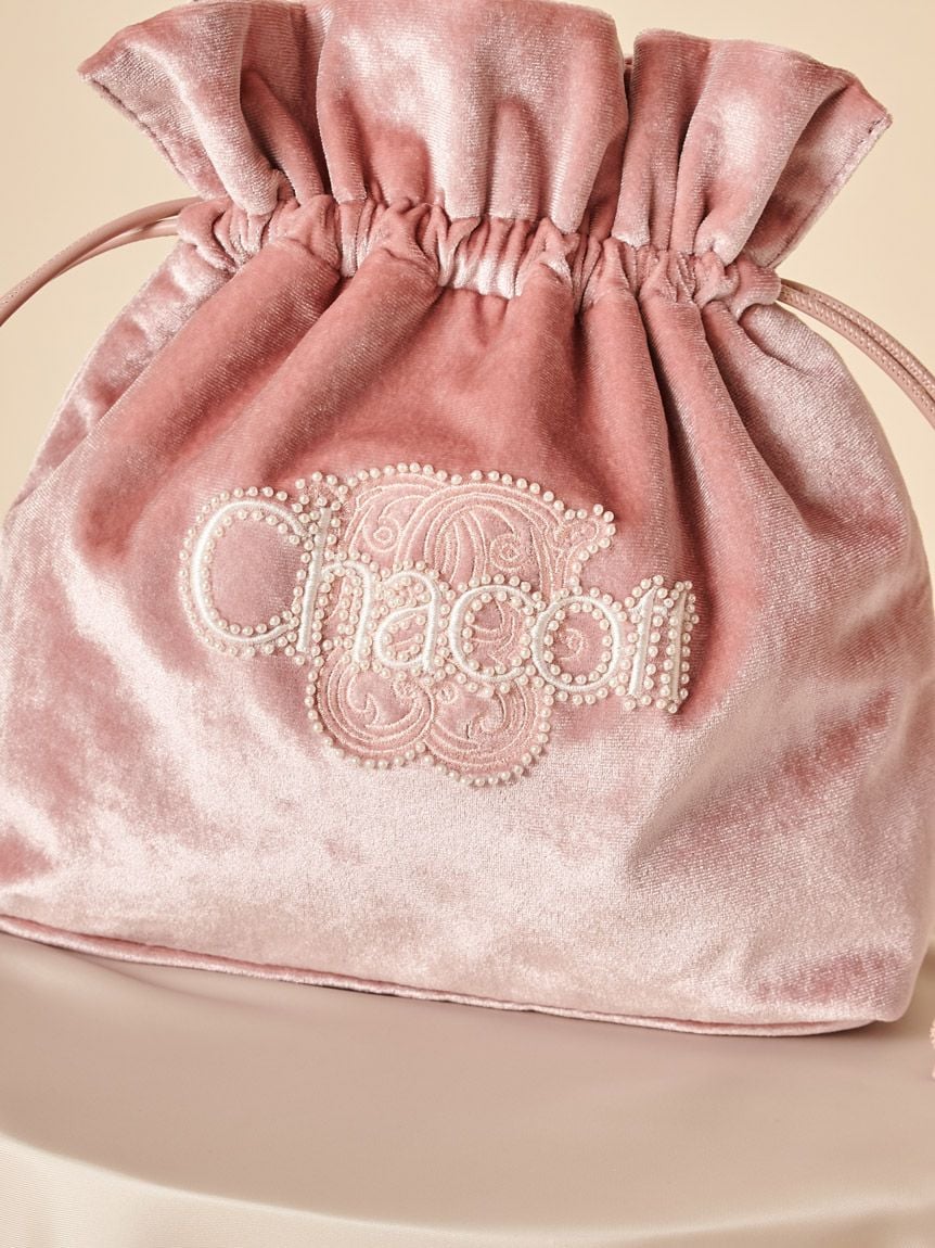 With a history spanning 70 years, "Chacott" continues to lead the Japanese ballet industry. With its brand philosophy of "Make life beautiful from the core," "Chacott" and "SNIDEL" have collaborated on a gorgeous collaboration bag featuring a double-branded emblem on the front. This drawstring bag features a beautiful, high-quality velour fabric with a lustrous sheen and a catchy design featuring the double-branded "Chacott" and "SNIDEL" embroidery, trimmed with small pearl beads. An interior pocket is provided for storing cards and other items. The drawstring is made of a thin, faux-leather-like material for a luxurious feel. Available in two colors: matte black and smoky pink.