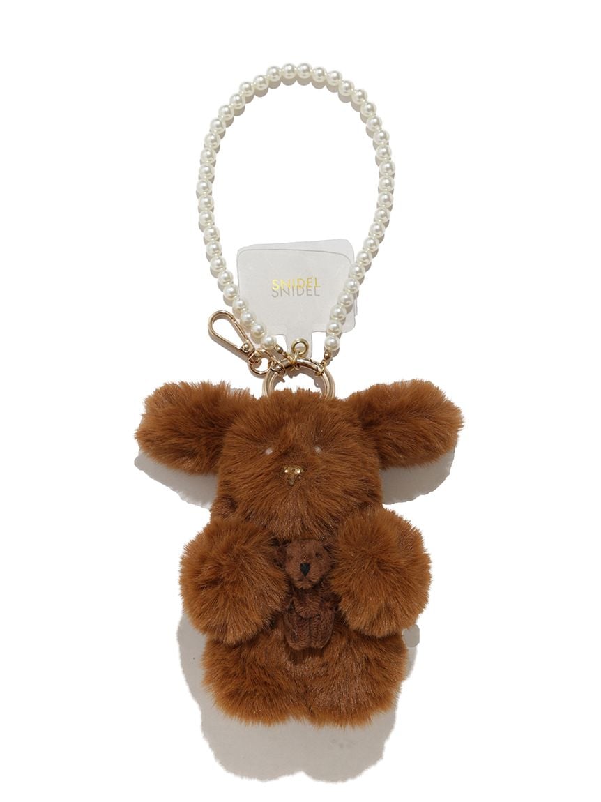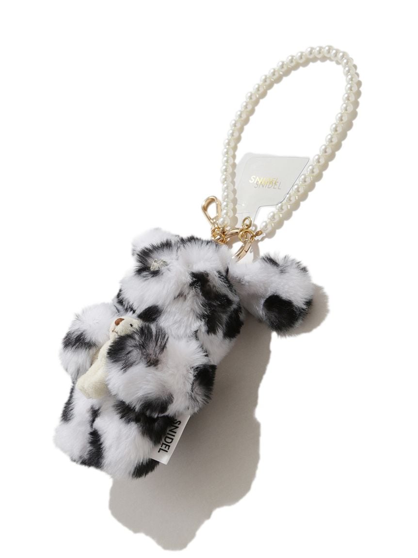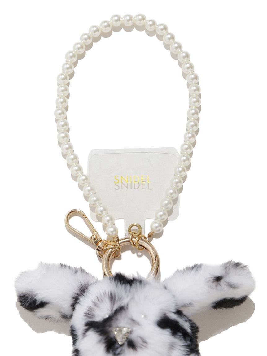 cute, original SNIDEL Moffy Hug Friend charm features a metal carabiner with a trendy design, featuring a mofy feature and an elegant pearl strap. It comes with a translucent SNIDEL logo strap card, allowing you to easily attach it to your smartphone. The pearl strap acts as a smartphone handle. This season's must-have is the charm hugging your teddy bear friend. This soft, fluffy mascot makes a perfect gift. Attach it to your canvas bag, Boston bag, smartphone, or keys to keep it with you wherever you go.