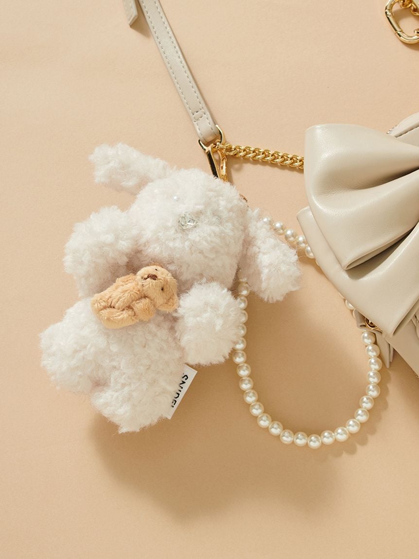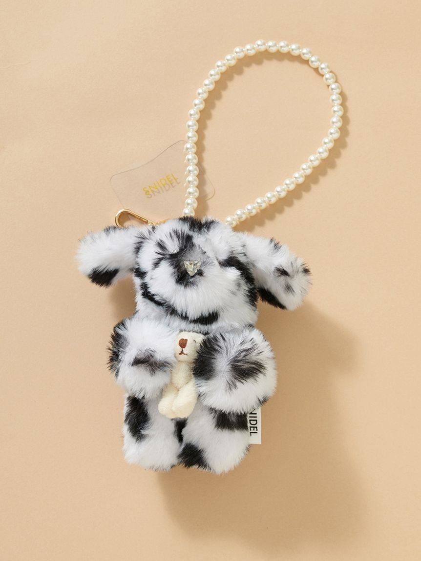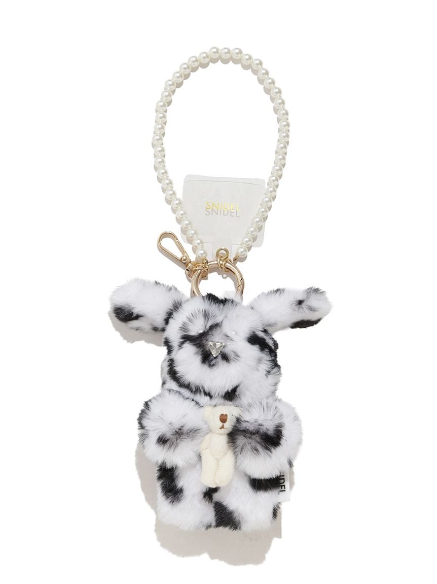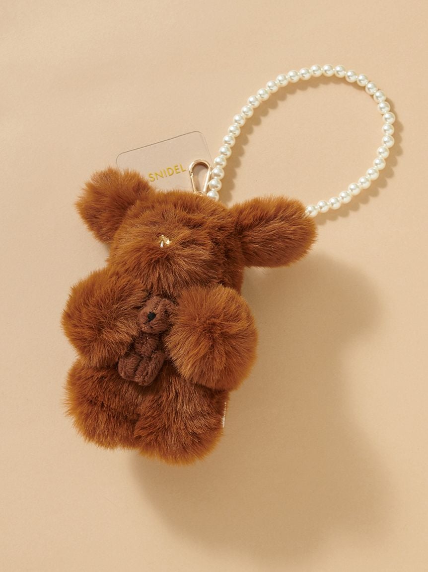 cute, original SNIDEL Moffy Hug Friend charm features a metal carabiner with a trendy design, featuring a mofy feature and an elegant pearl strap. It comes with a translucent SNIDEL logo strap card, allowing you to easily attach it to your smartphone. The pearl strap acts as a smartphone handle. This season's must-have is the charm hugging your teddy bear friend. This soft, fluffy mascot makes a perfect gift. Attach it to your canvas bag, Boston bag, smartphone, or keys to keep it with you wherever you go.