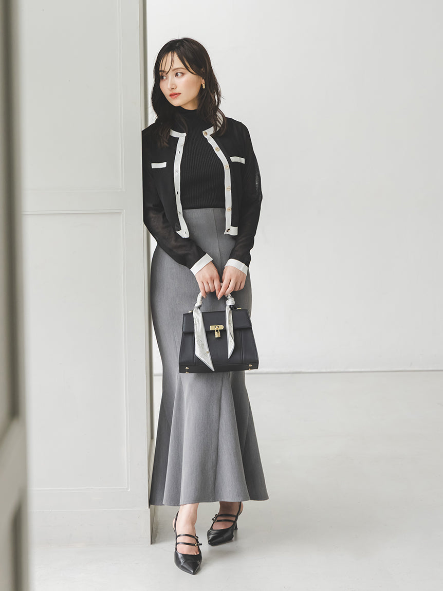 Available in three colors: ivory, black, and khaki. The knit fabric is made of polyester with a subtle shimmering glitter yarn.