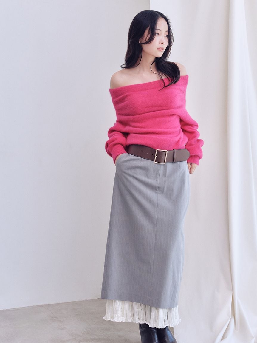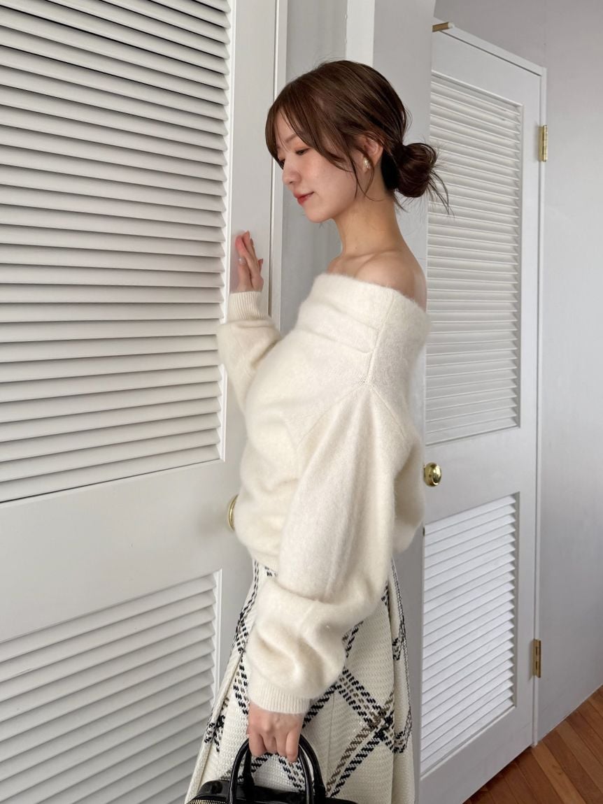 [HIGH QUALITY COLLECTION] Fox Cashmere Off-Shoulder Pullover