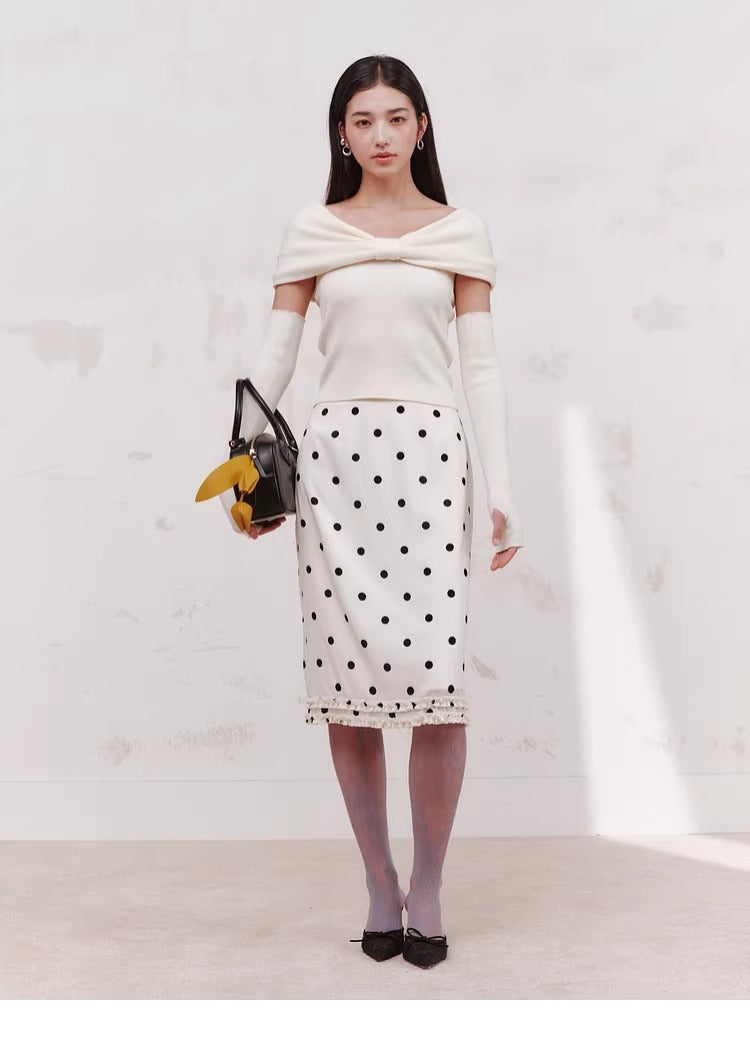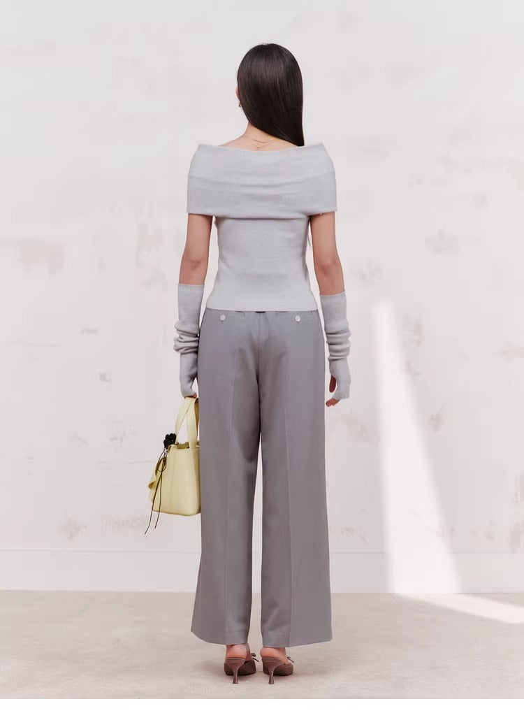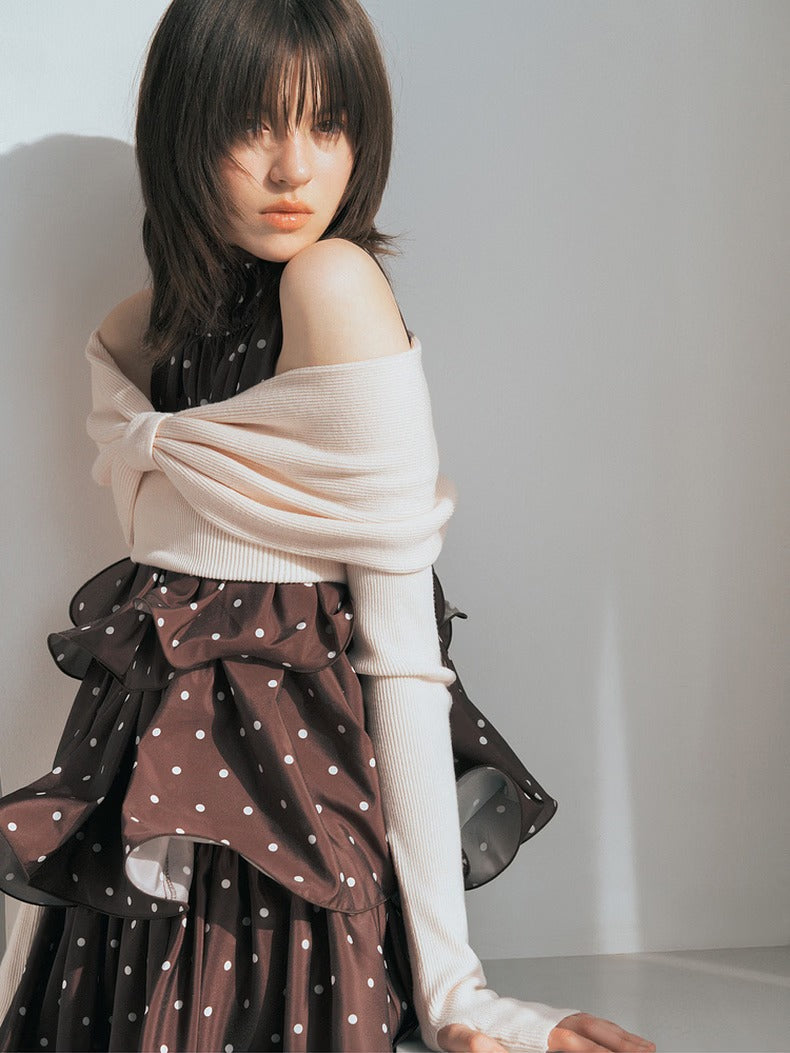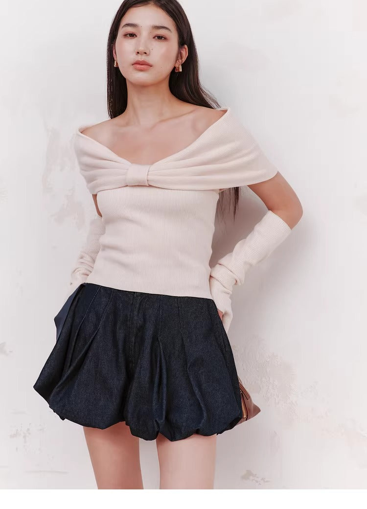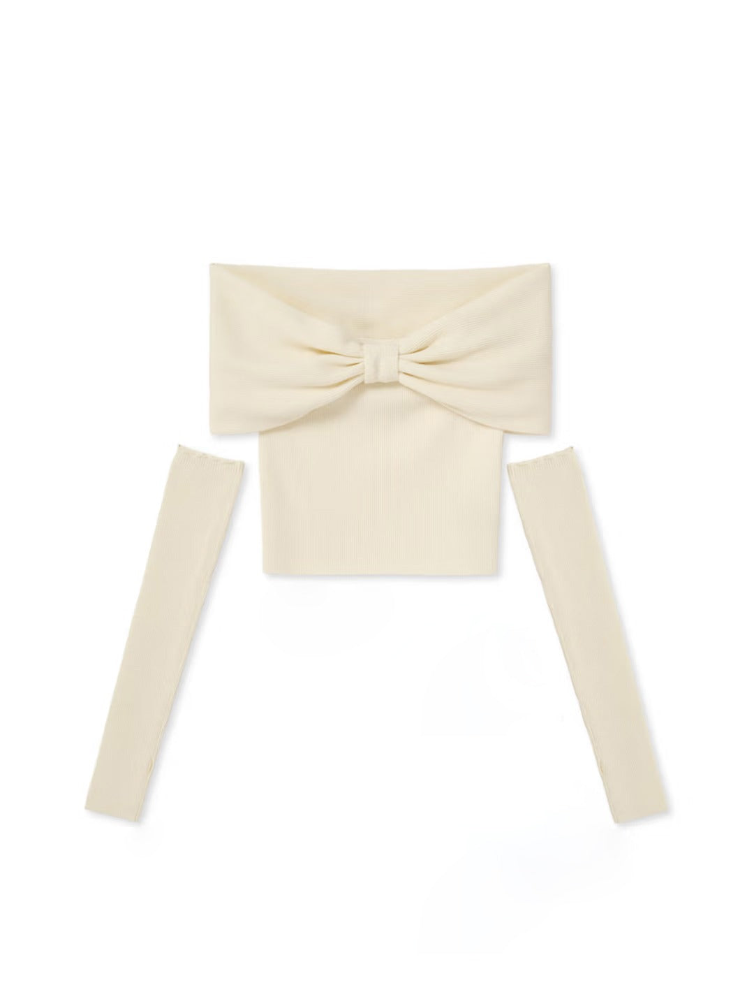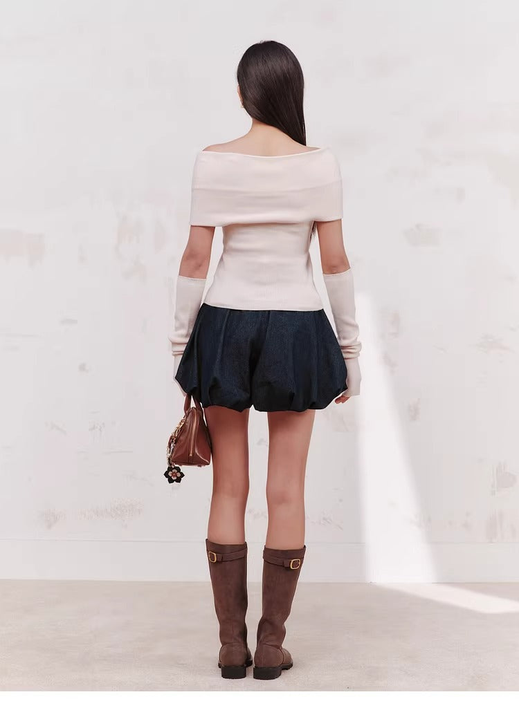 【Off-Shoulder Knit Top with Arm Warmers】