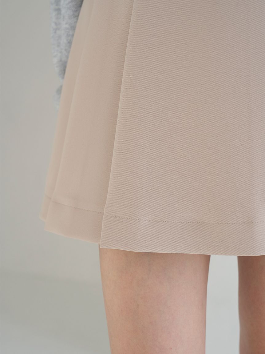 Introducing a pleated miniskirt with a faux leather belt that fits just right at the waist and achieves a balanced look that's perfect for this season. The wide pleats and limited number of pleats create a sophisticated, mature impression. The clean silhouette makes it perfect for both tucked-in styles with a belt and worn with a peplum top for a balanced look. The twill-like fabric gives it a refined look. A decorative flap pocket at the waist adds an accent. The flap features elegant metal buttons. The back zipper allows for easy fastening and detachment. Lined.