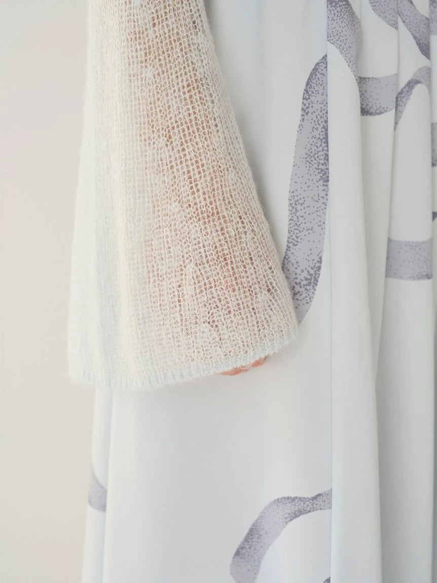 The set also includes a fluffy, low-gauge knit cardigan, perfectly matched with the slightly shorter dress.