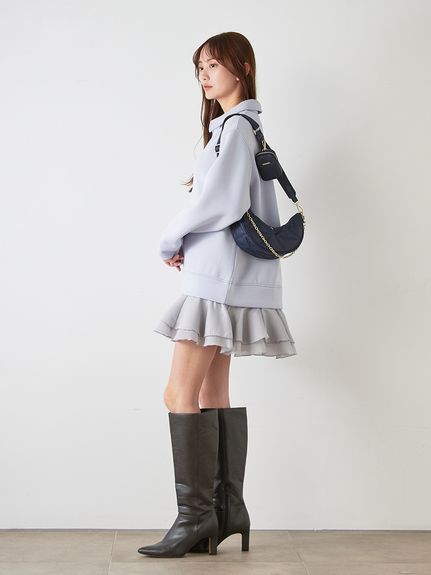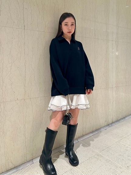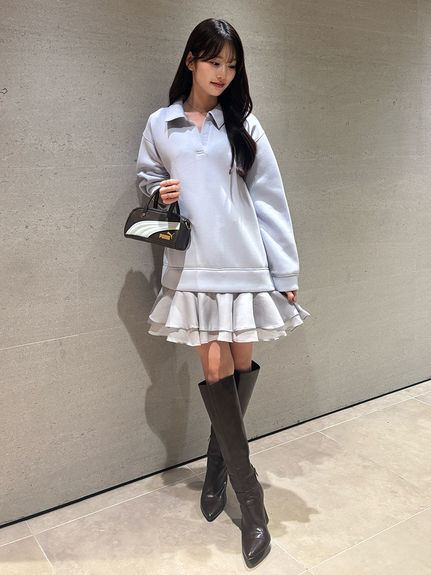 [A standout piece with a striking mix of materials: a cut-and-sew mini dress]