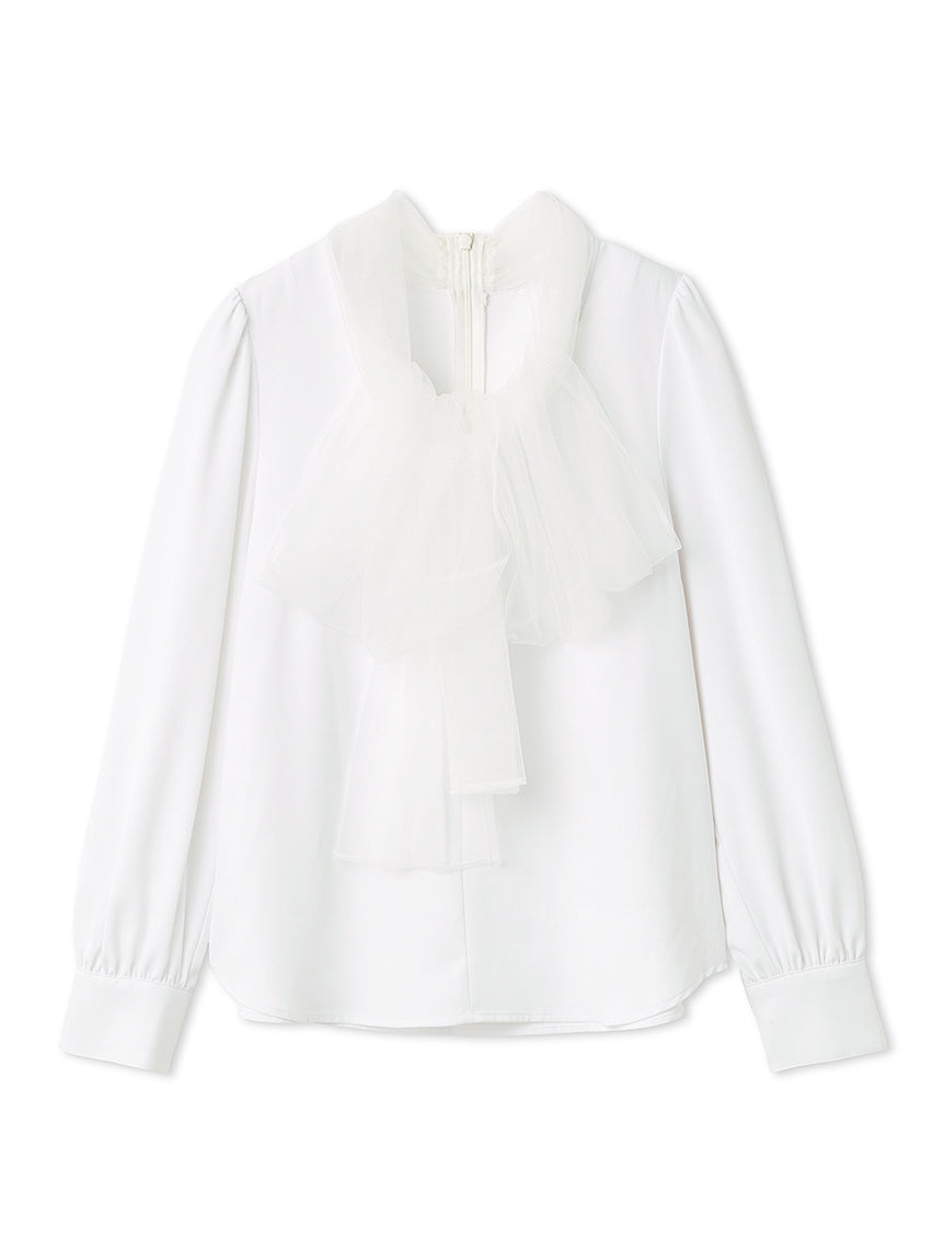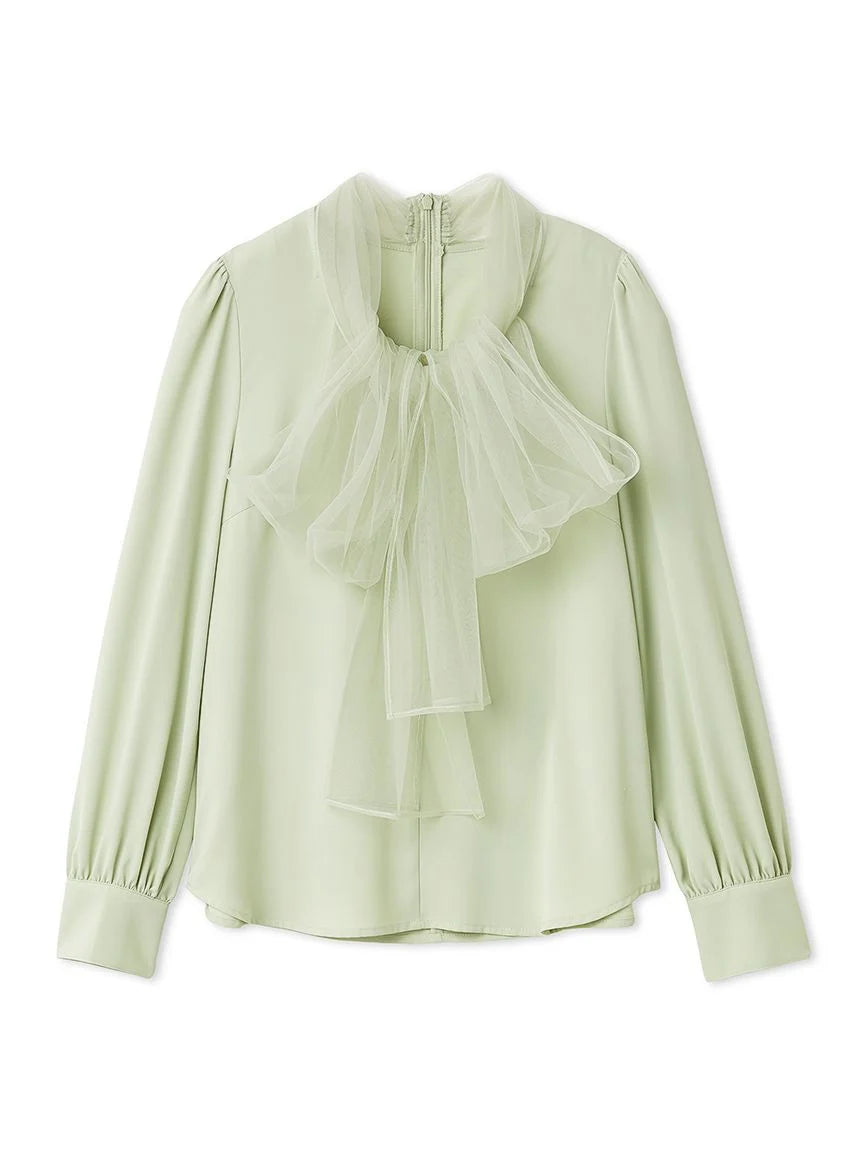 [A gorgeous satin-like blouse with a voluminous tulle ribbon]