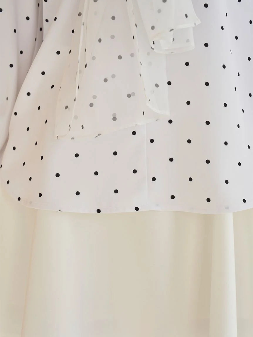 The body is made of polyester, which is wrinkle-resistant and easy to handle. Available in three colors: clean white, soft mint, and dots (white with black dots).