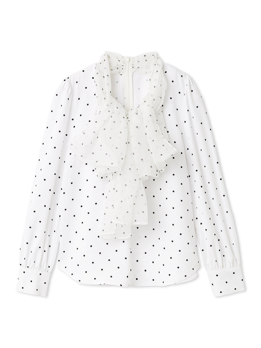 A gorgeous tulle ribbon with a delicate sheerness and soft volume is paired with a soft, flowing blouse. This versatile bow tie blouse features a moderately loose silhouette that looks balanced whether worn inside or outside. The voluminous ribbon brightens the face, making it ideal for wearing under a knit or jacket. We also recommend pairing it with the Varie Tweed Jacket (SWFS261079). The body is made of lightweight, lustrous georgette fabric, perfect for special occasions. The voluminous ribbon at the chest is simple to tie; simply thread it through the tulle loop at the neckline and tie it in front. The shoulders