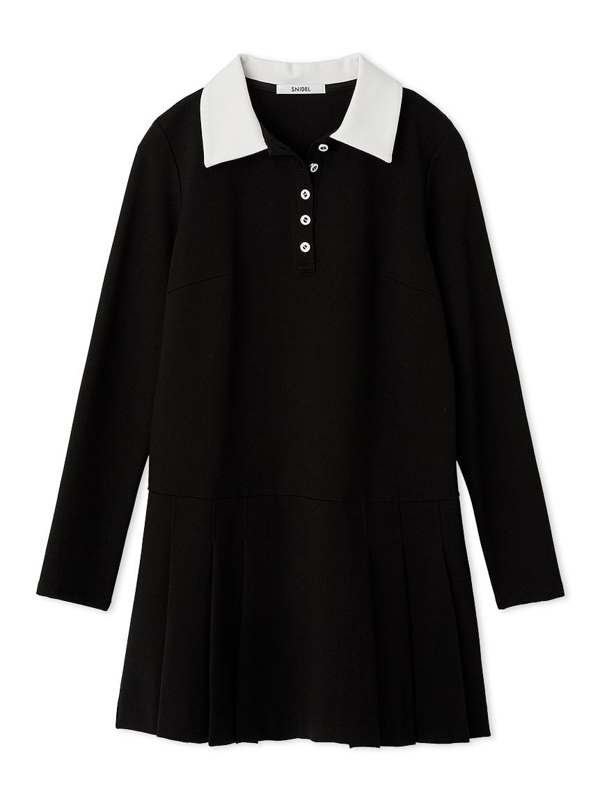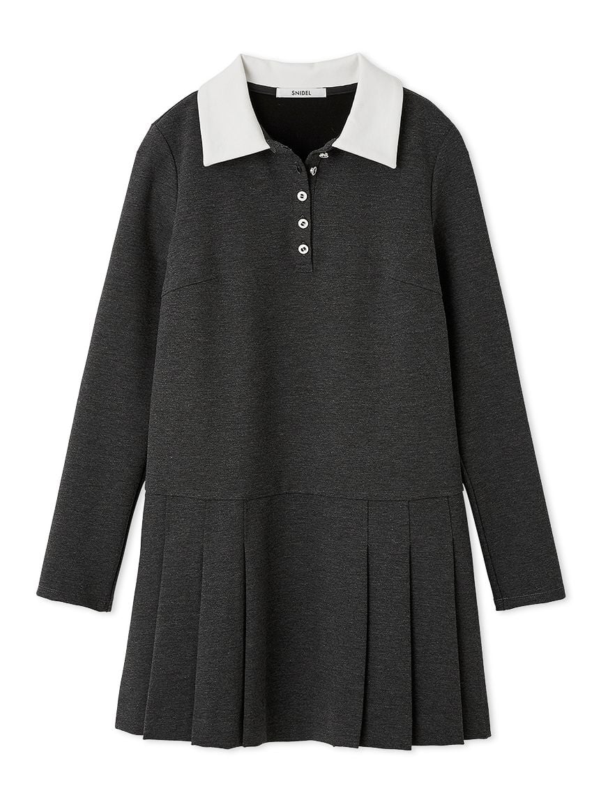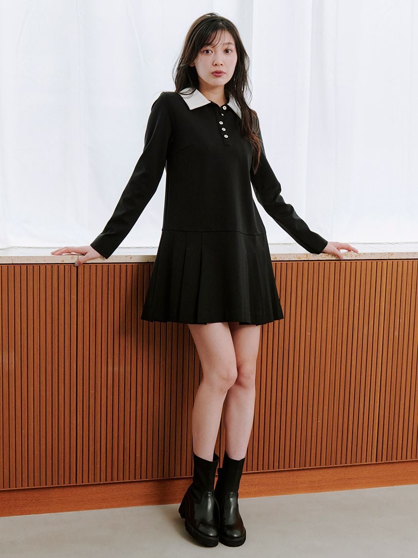 [Made with sustainable fabric! This elegant and fashionable collared pleated mini dress is made with a comfortable, stretchy jersey fabric.]