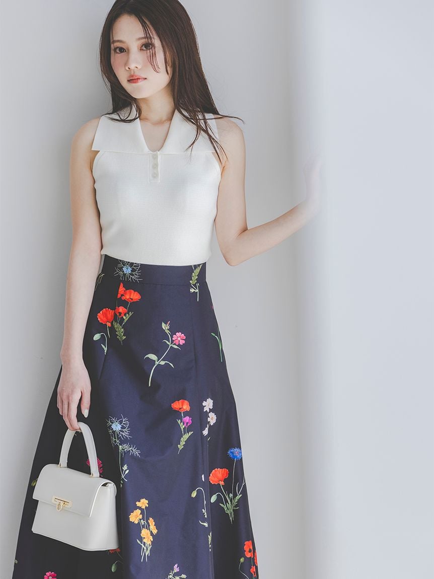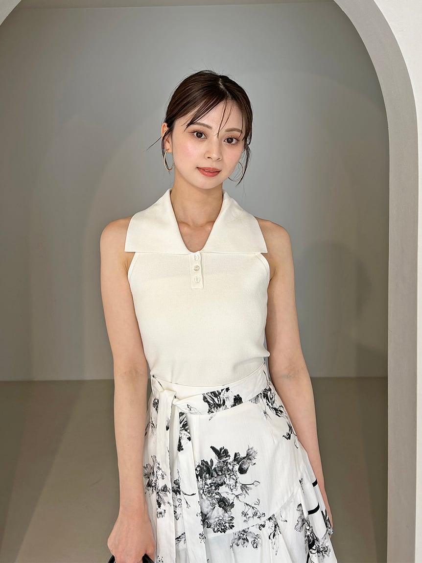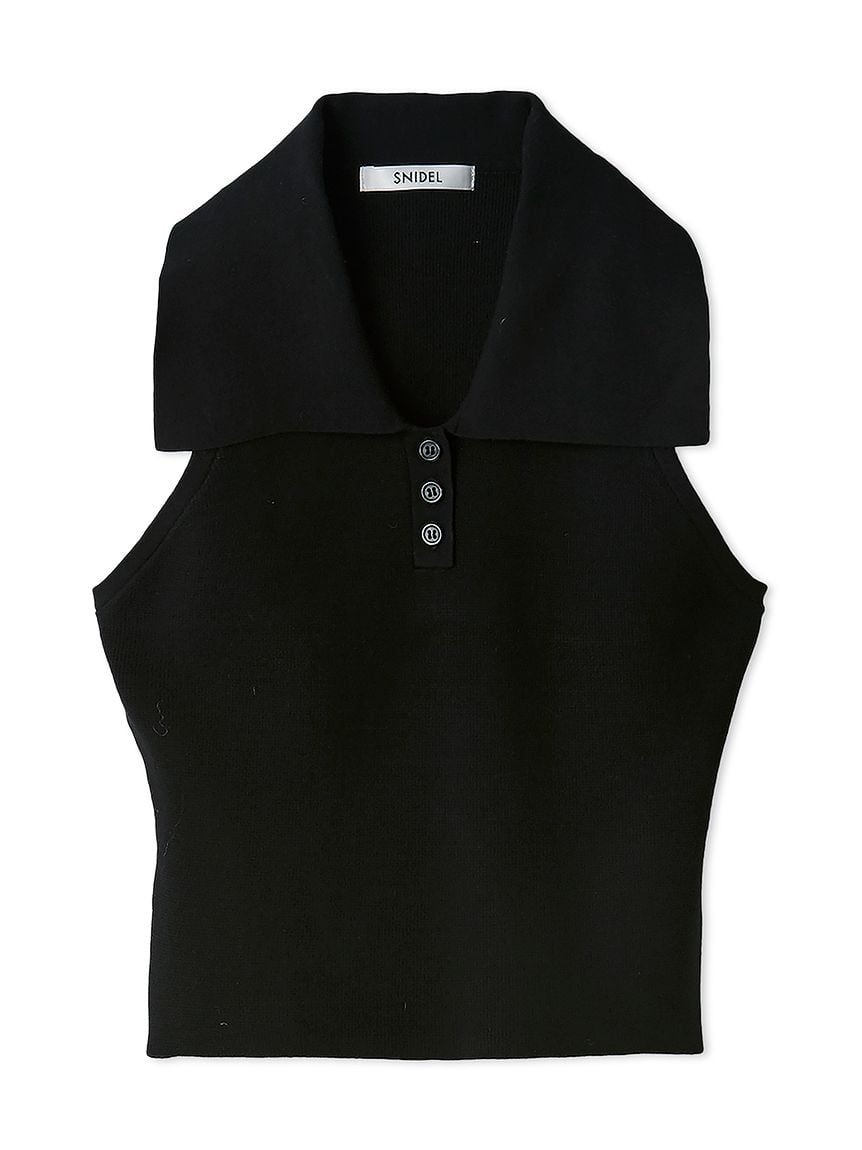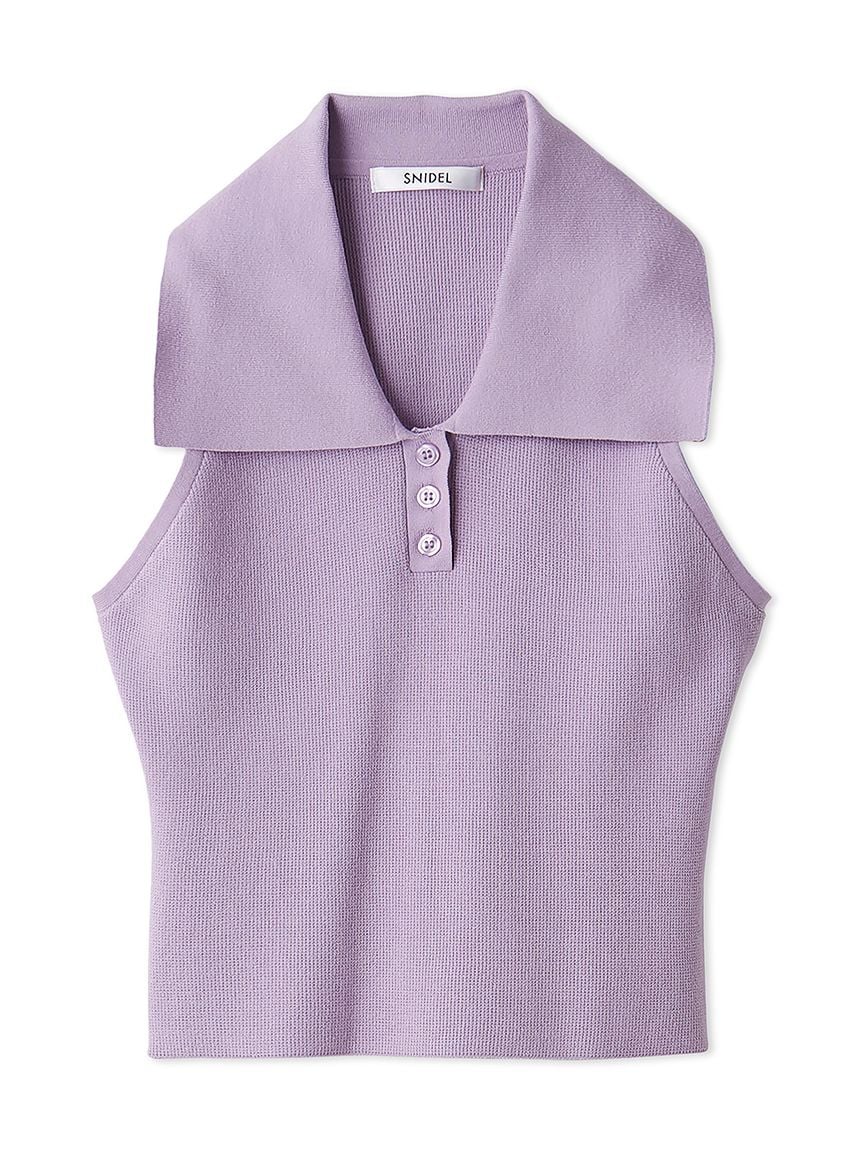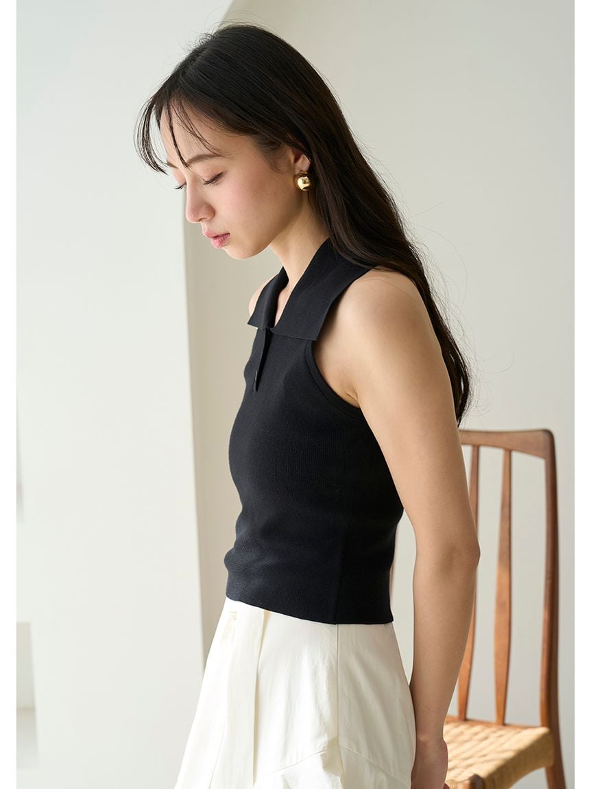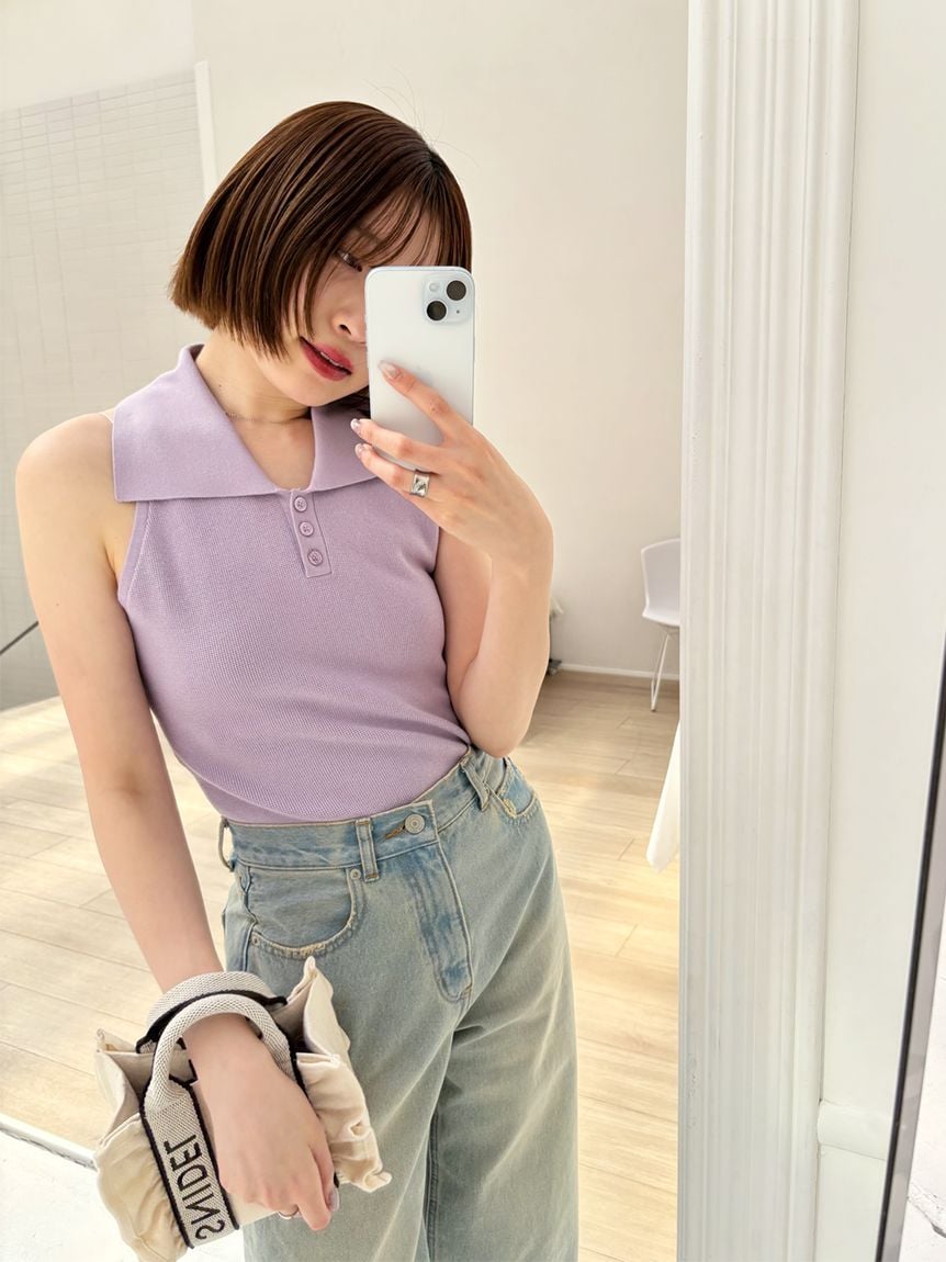 This knit pullover combines a classic design with a modern impression, with a stylish design and a wide collar that elegantly colors the face. There are three buttons on the front, which draws the eye vertically for an excellent style-up effect. The material is a soft summer knit that feels good on the skin. The trendy cropped length expands the range of coordination regardless of bottoms.